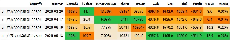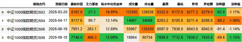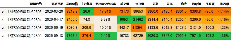 期指合约信息: