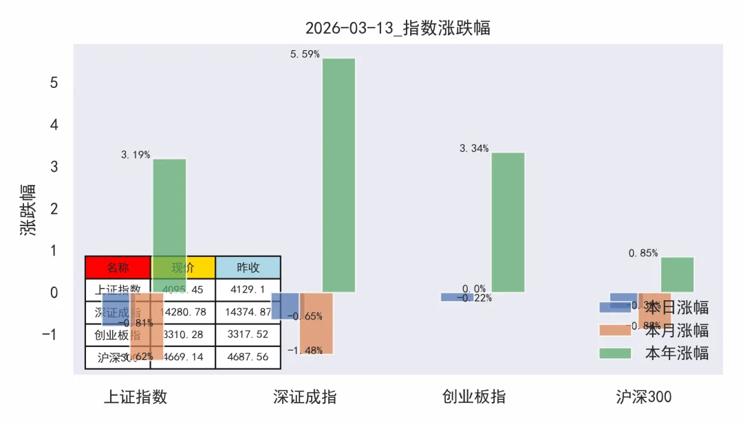 2026-03-13市场指数表现