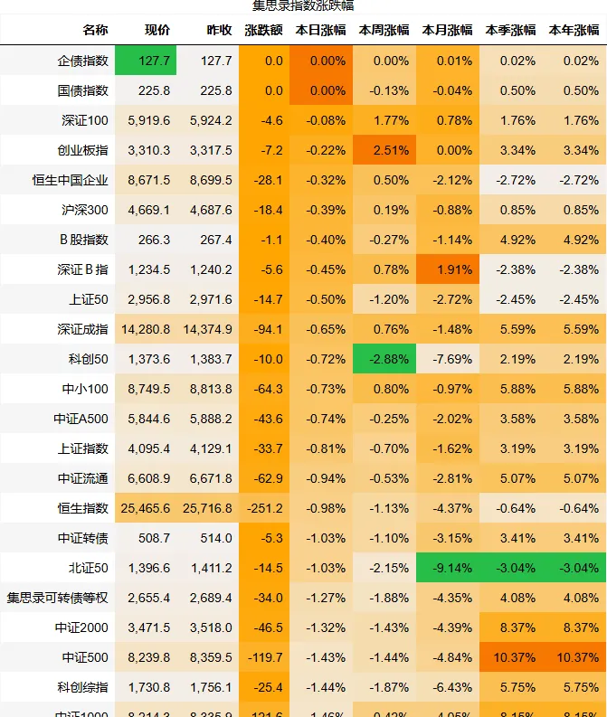 集思录等权指数涨幅:-1.27%
