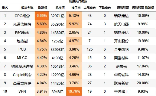 东方财富涨幅热门板块