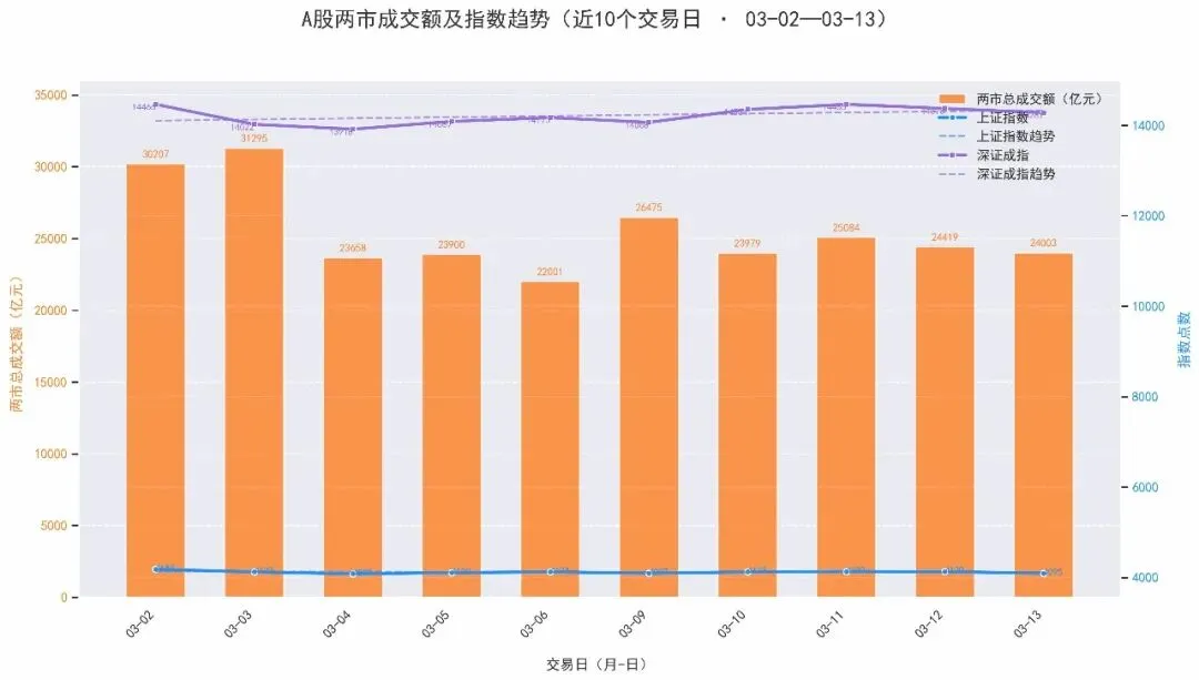 2026-03-13沪深两市成交额:24003.17亿