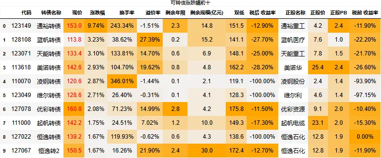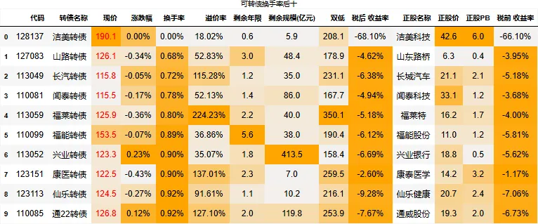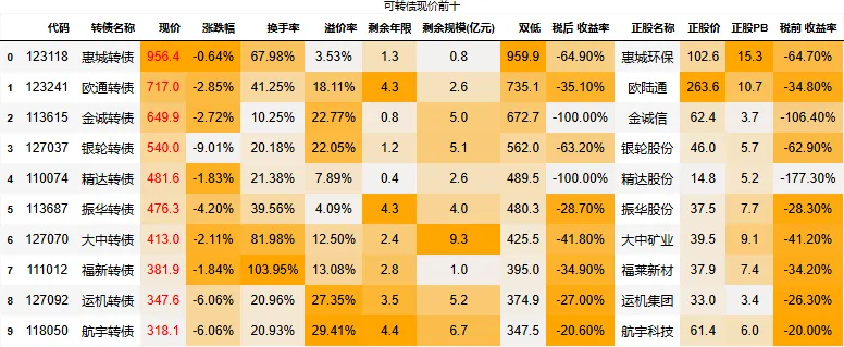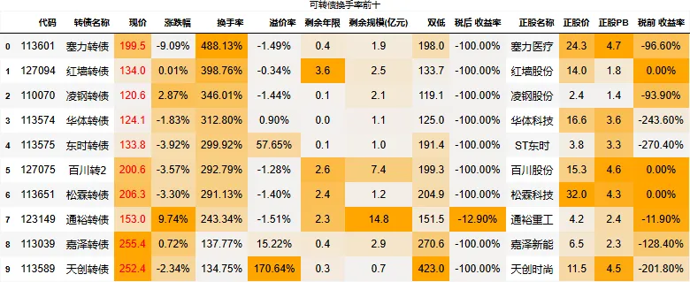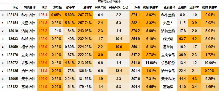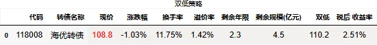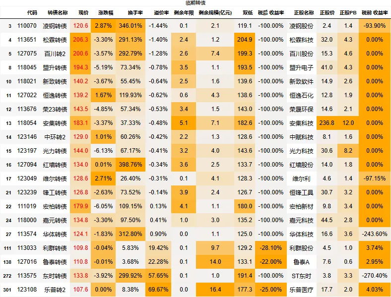 溢价率小于20的转债数量:118只