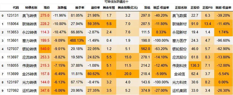 130以上高价转债涨幅中位值:-1.16%