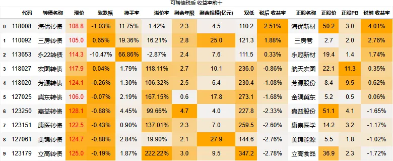 到期税后收益大于0的转债数量:3只