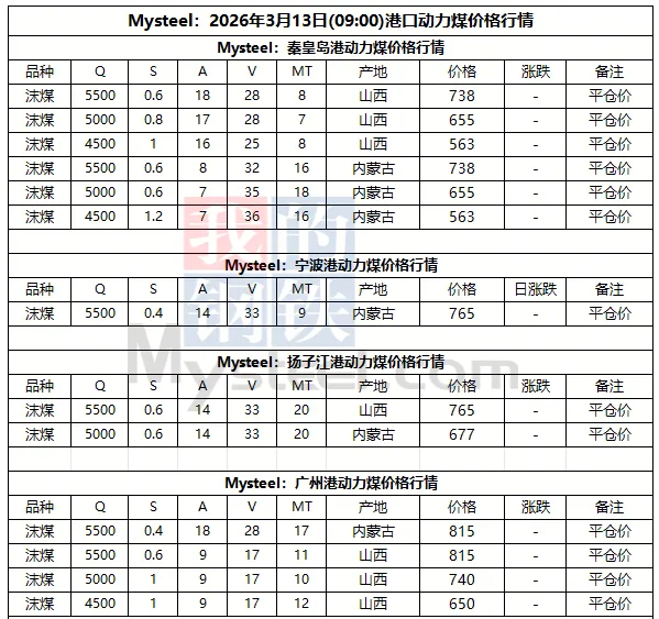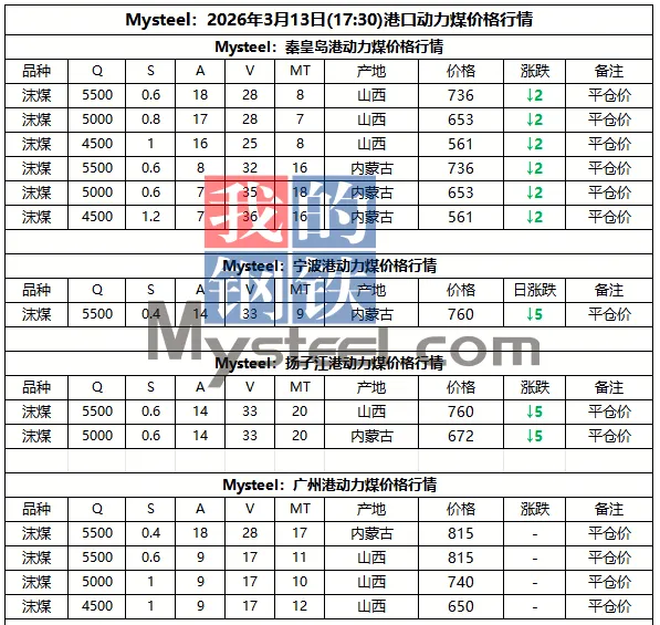 13日港口市场动力煤弱稳运行。昨日港口交投氛围冷清,现货贸易商报价下调5元/吨。现阶段终端对市场煤的采购计划较少,下游询货需求基本以刚需为主,压价现象普遍,上下游报询盘差距较大,市场整体交投氛围较为僵持,观望情绪蔓延,后市需持续关注港口去库速度和实际成交情况。