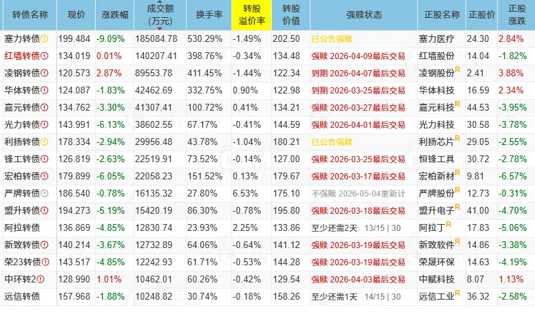 核心概念:医疗服务,正股塞力医疗今日上涨(+2.84%),但转债因强赎公告暴跌。