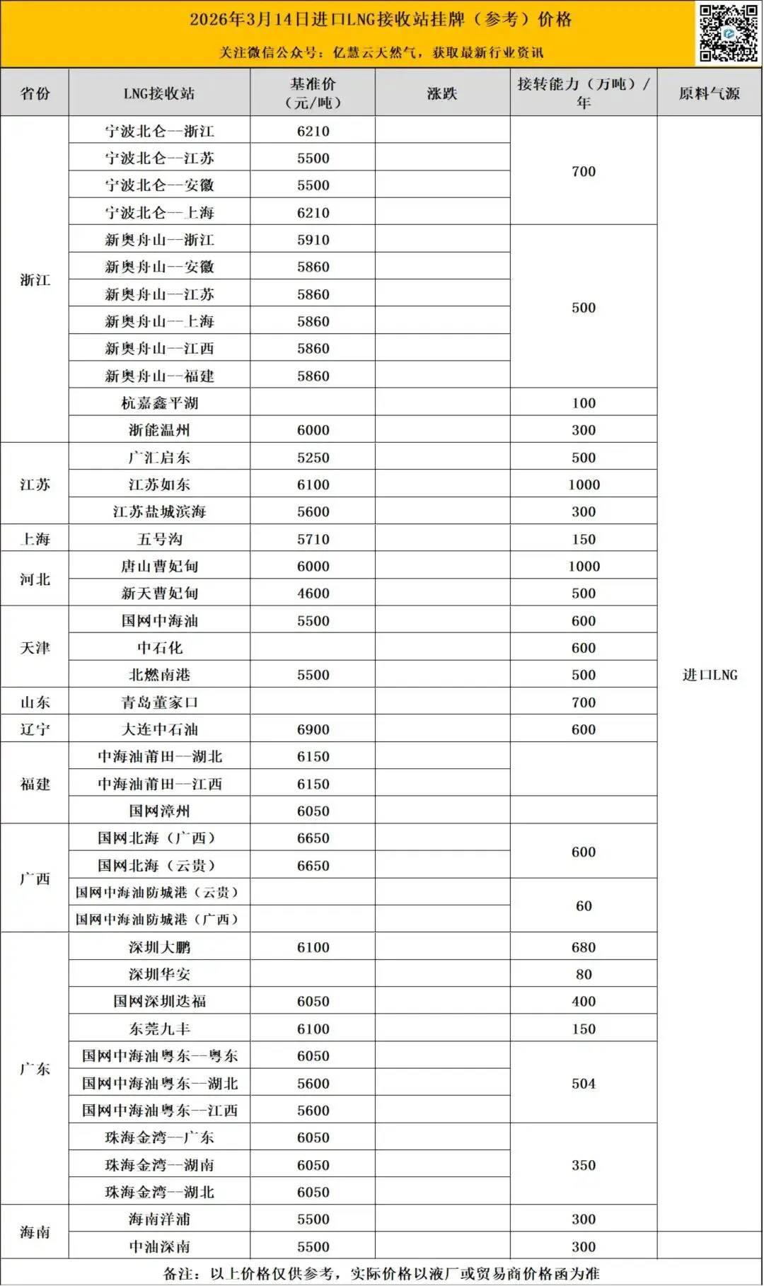 为了方便朋友们及时了解市场动态,掌握市场行情,把握市场机会。亿慧云天然气每天为大家提供行业新闻,国内LNG挂牌价格,本价格信息只做参考,具体提货价格请与工厂销售联系。(当天调价见底下留言)