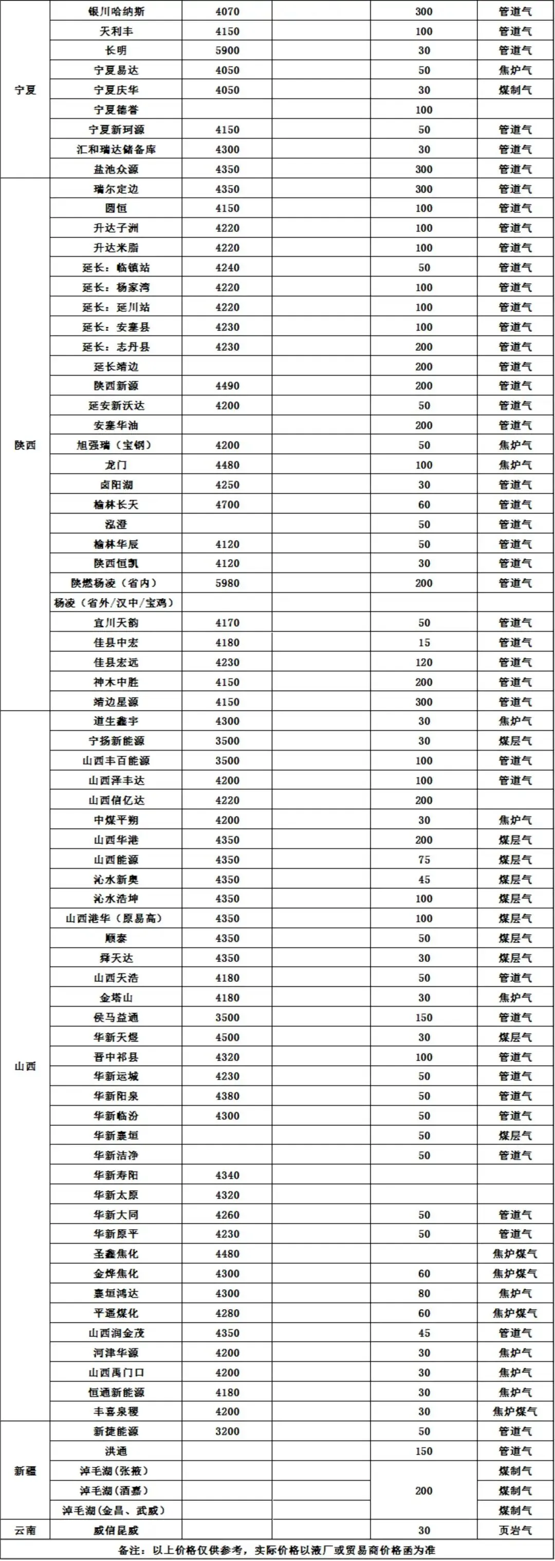 ● 国产LNG液厂价格