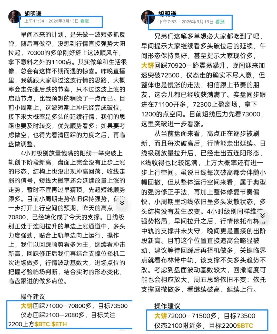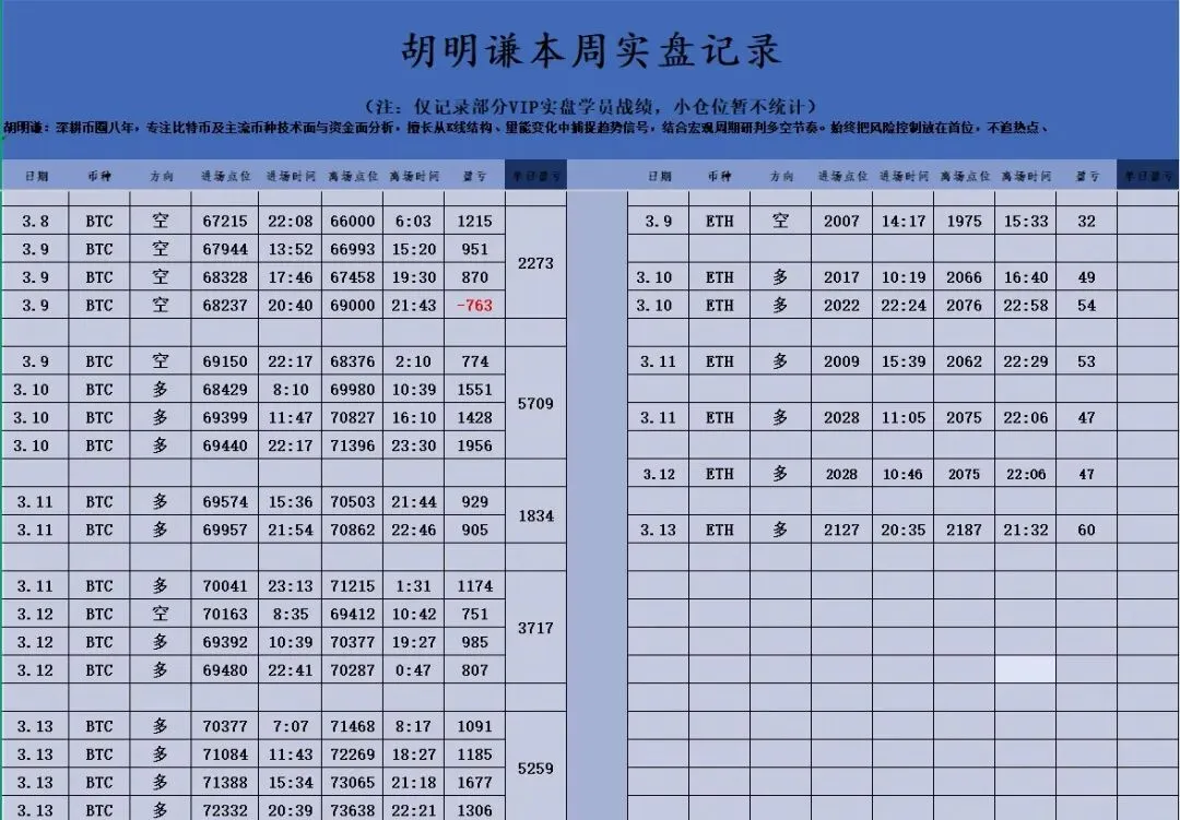 周五的盘面基本没给空头任何还手余地,币价每一次突破都能顺势走出延续,最终大饼冲高至73870一线,以太也顺利突破2200关口。我们日内布局的多单,无论短线还是波段,实现全线止盈。其中大饼四笔多单合计拿下5259点,以太一单斩获60点;直播间给到的两笔现价单也双双止盈,累计拿下1100点。这种单趋势行情,从来都是撑死胆大的、饿死犹豫的,观望不敢上车的朋友,这会儿只能追悔莫及,能不能吃到肉,看的是敢果断上车的魄力。总想着等更低点位,到头来只能看着行情一路走高,这就是大多数人最真实的样子。
