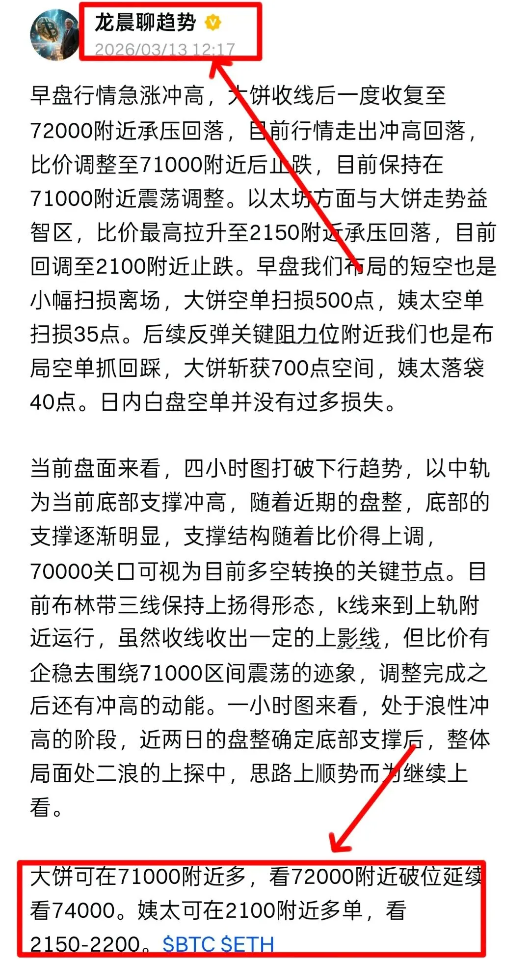 大饼可在71000-71500多,看74000附近。姨太可在2100-2120多,看2200附近。
