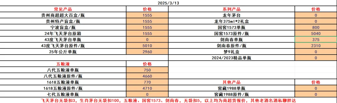 酒水主要为飞天茅台以及五粮液,范围还包括:国窖1573、剑南春等。购买酒水需注意是否包盲盒,以及要注意不要买到海外版本等。