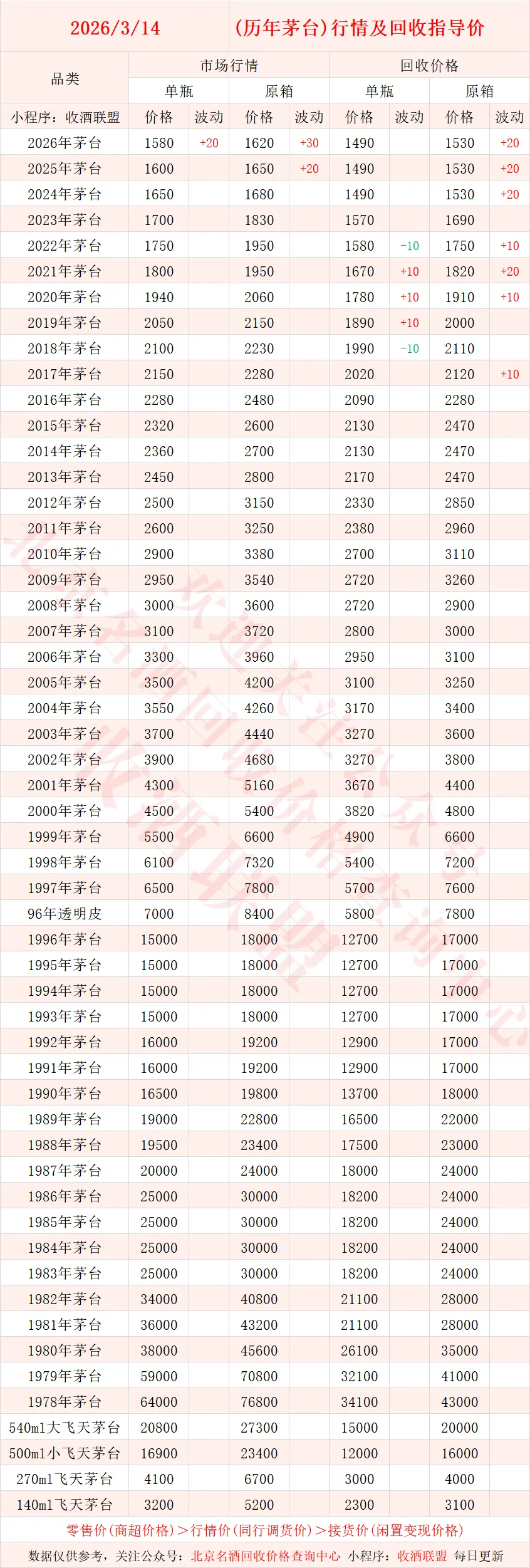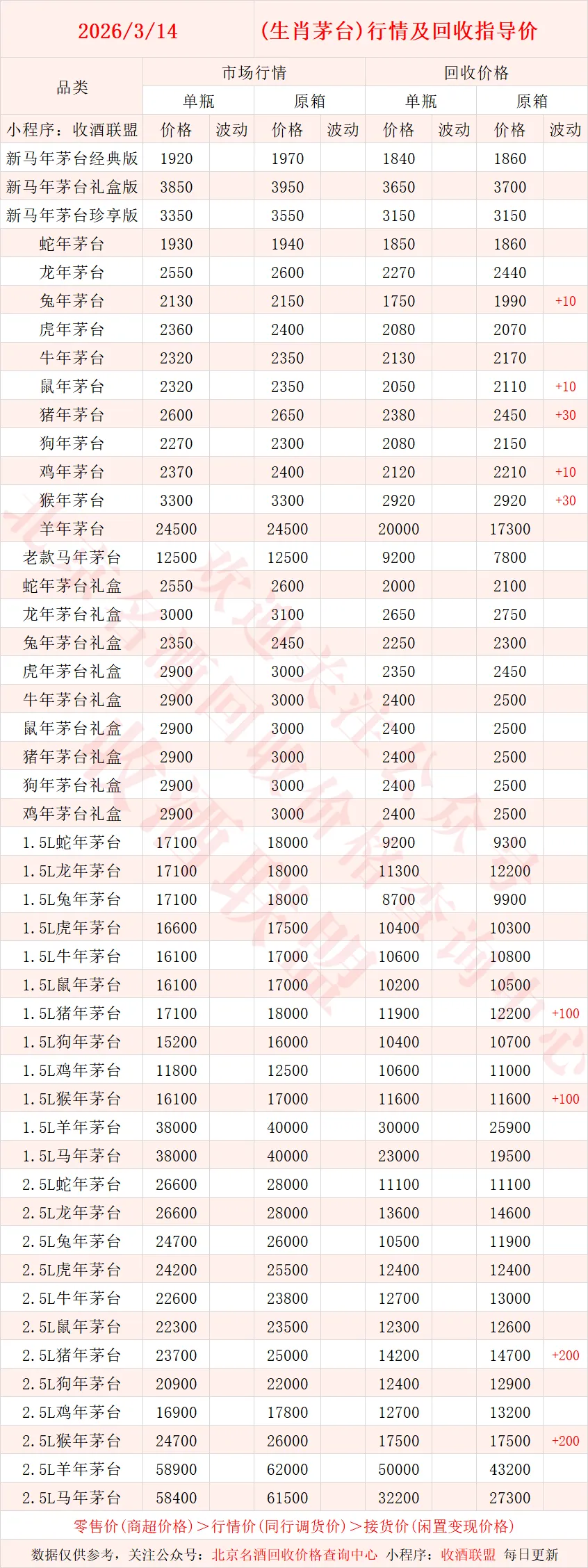由于平台修改了推送规则,如果您不想错过每天的“一线名酒回收行情”,记得读完点一下“赞“和“推荐”,这样每次新文章推送才会第一时间出现在你的订阅列表里,谢谢各位老铁!