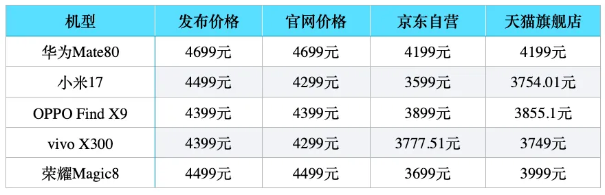 只是荣耀Magic8和小米17等机型,有满减活动,可以领200~300元的优惠券,也就有了少量的降价空间。