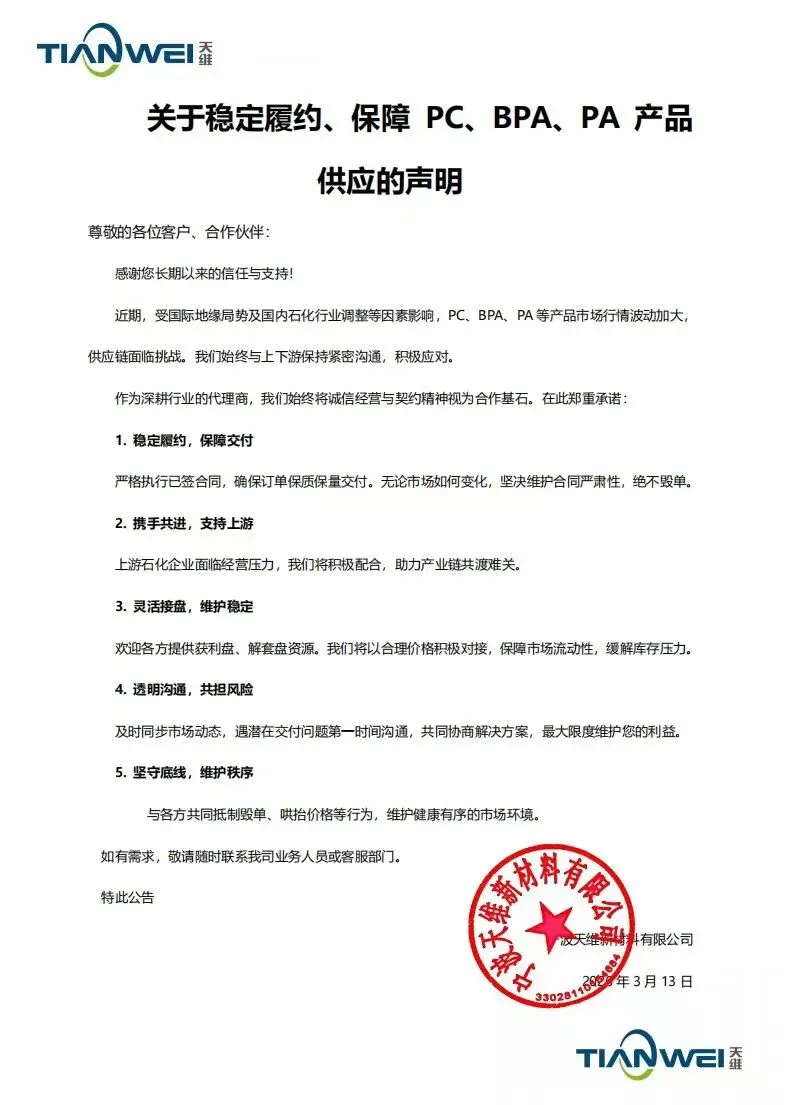 坚守契约 如期交付 | 关于塑料市场行情波动的郑重声明声明