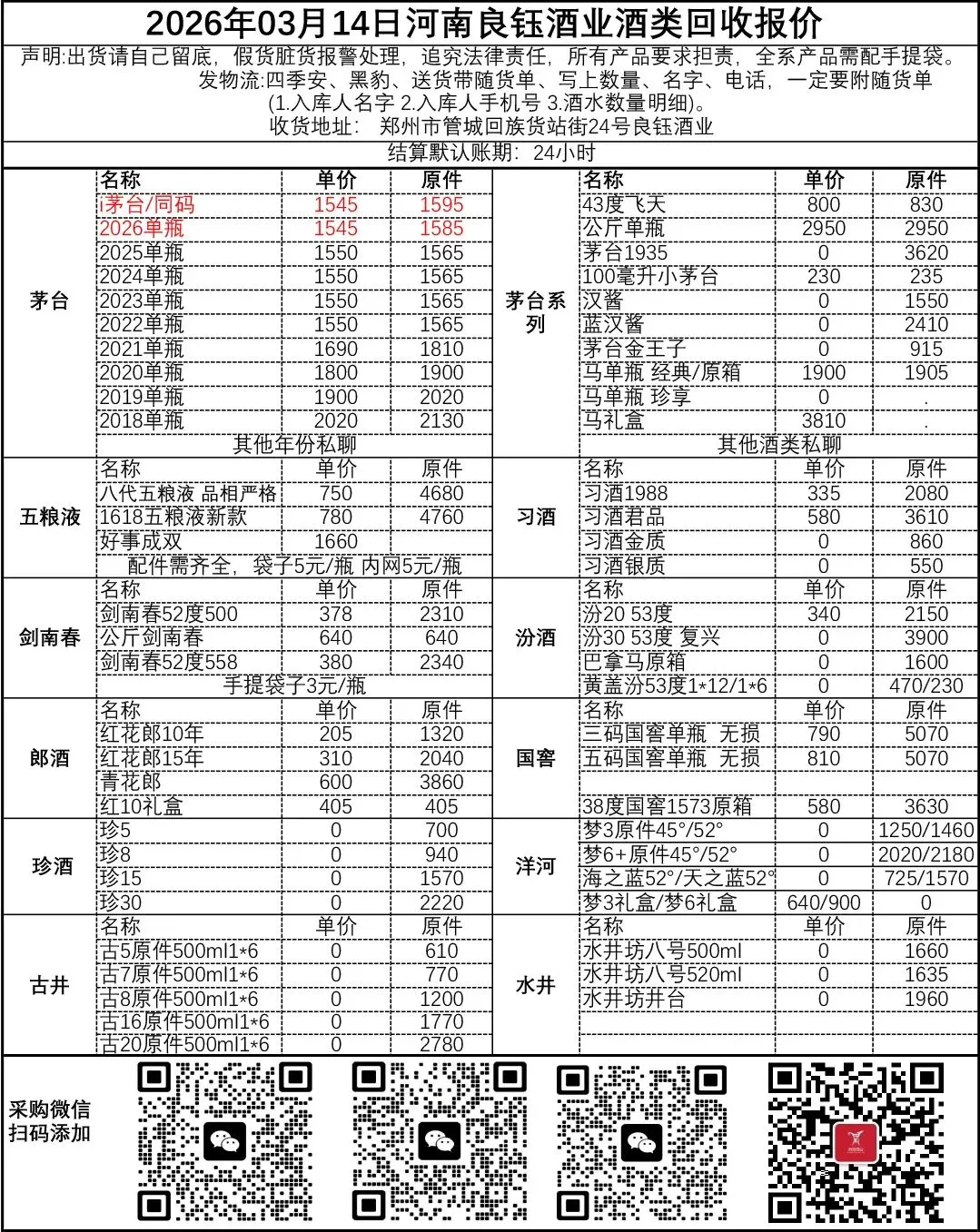 地址变更:收货地址: 郑州市金水区陇海快速路与货站街交叉口东北角 良钰酒业