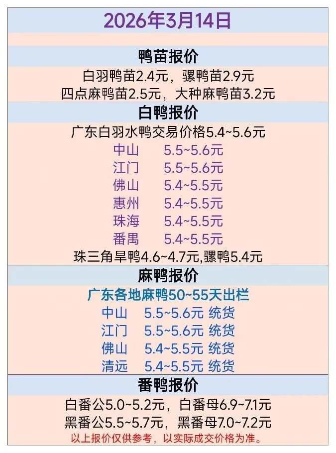 >2026年3月14日广东毛鸭行情