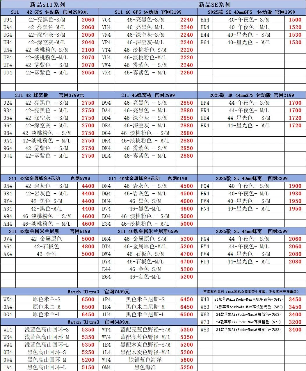 一、苹果行情(手机、平板、Macbook、手表)