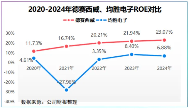 2022年以来,德赛西威净资产收益率均在20%以上,均胜电子却不到10%。
