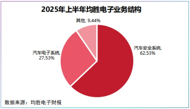 2025年上半年,公司汽车安全营收189.8亿元,占比高达62.53%,汽车电子业务营收83.56亿元,占比27.53%。