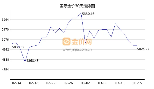 今日伦敦金下跌,现价5021.27 美元/盎司,下跌-1.15%,今日开盘价5075.98,最高价5128.41,最低价5021.88。