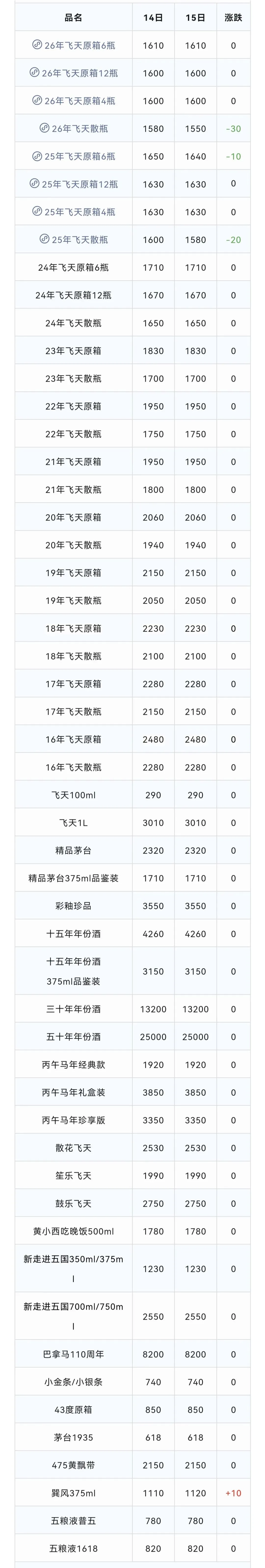 ※行情价:酒商调货价,不考虑物流运输人工成本,每个地区调货价有几十块浮动属正常现象。