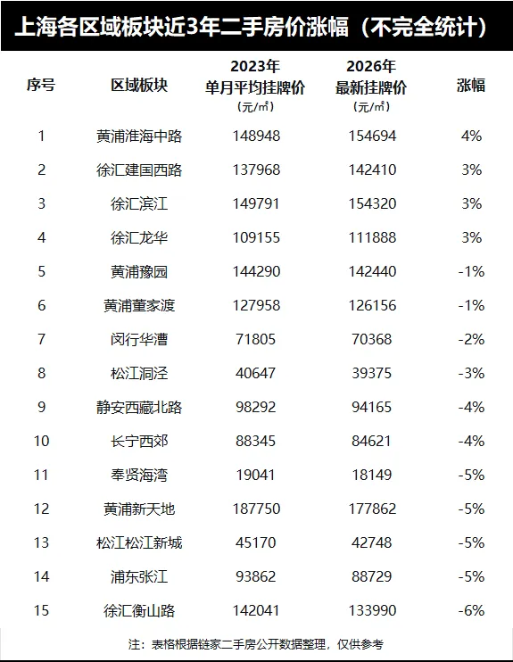 从2023年到2026年,上海16区大部分板块中的二手房价,都逃不过一个“跌”字,但偏偏也有例外,徐汇滨江、淮海中路等4大优质地段,挂牌价不跌反涨,让人大为意外。