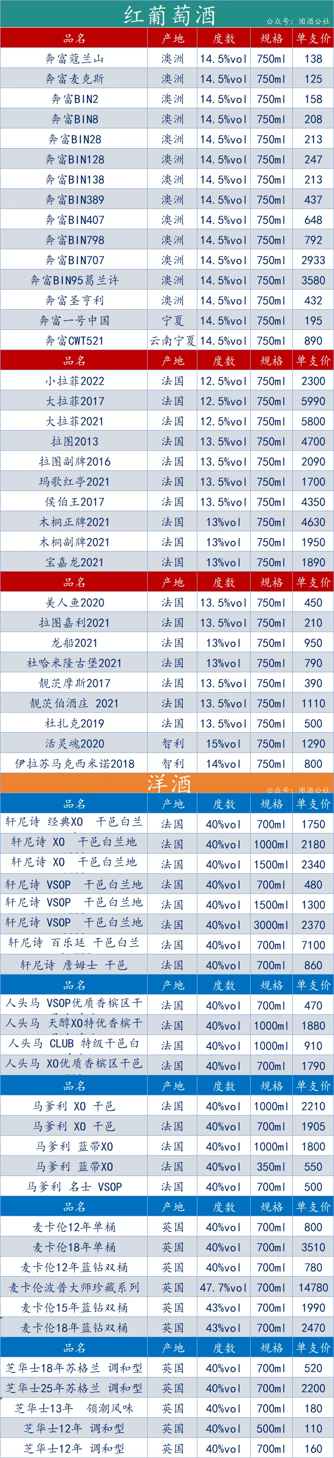 亲爱的酒友们,以上是我们整理的部分品牌数据,包括奔富、拉菲、张裕以及麦卡伦等,这些信息均来源于网络,仅供您参考。由于地区间的物流费用与经营成本存在差异,实际报价或许会略有不同。如果您有任何疑问,请随时扫描下方的微信二维码与我们联系,期待与您的交流!