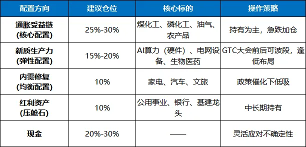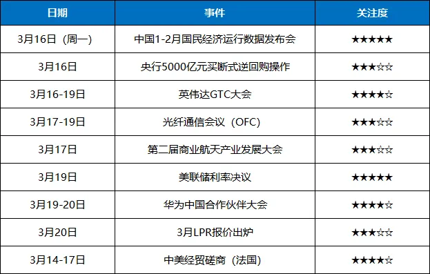 操作上采取均衡配置、高低切换策略,以通胀链为核心配置,科技成长逢低布局,规避前期涨幅过大品种。重点关注3月16日经济数据、3月19日美联储议息会议、英伟达GTC大会产业催化。