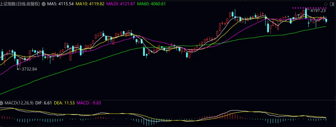 股市上证指数从4098冲上4140又降为4095。