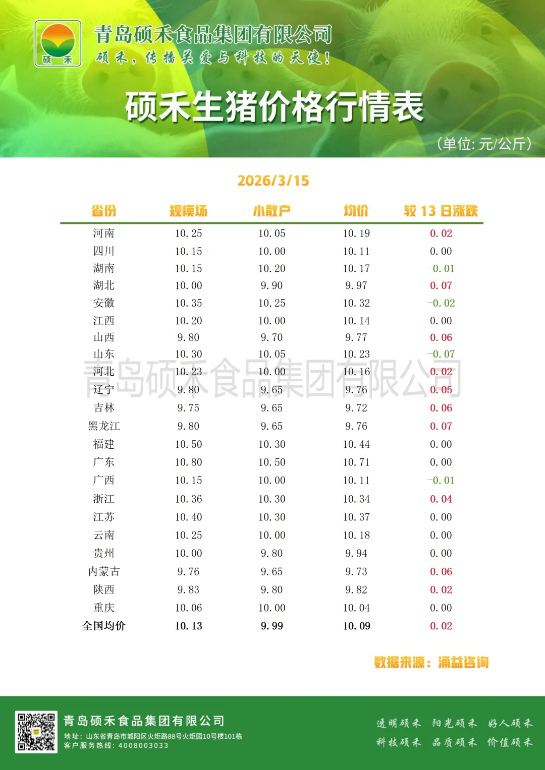 【生猪行情】3.15硕禾生猪价格行情