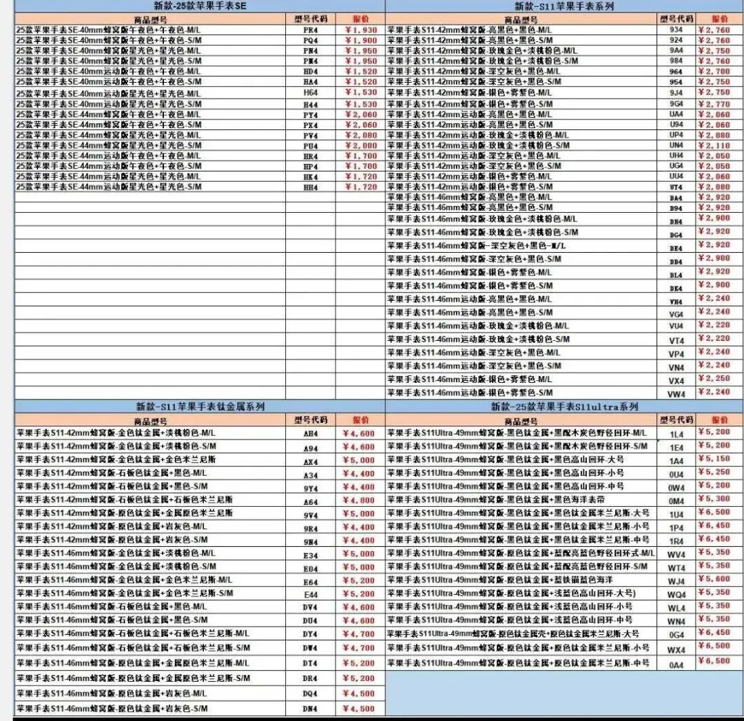 一、苹果行情(手机、平板、Macbook、手表)