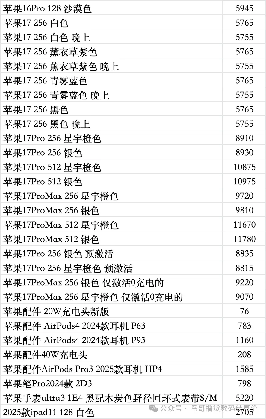 | 鸟哥收货iphone/ipad/手表系列结算价(前一天的结算价) |