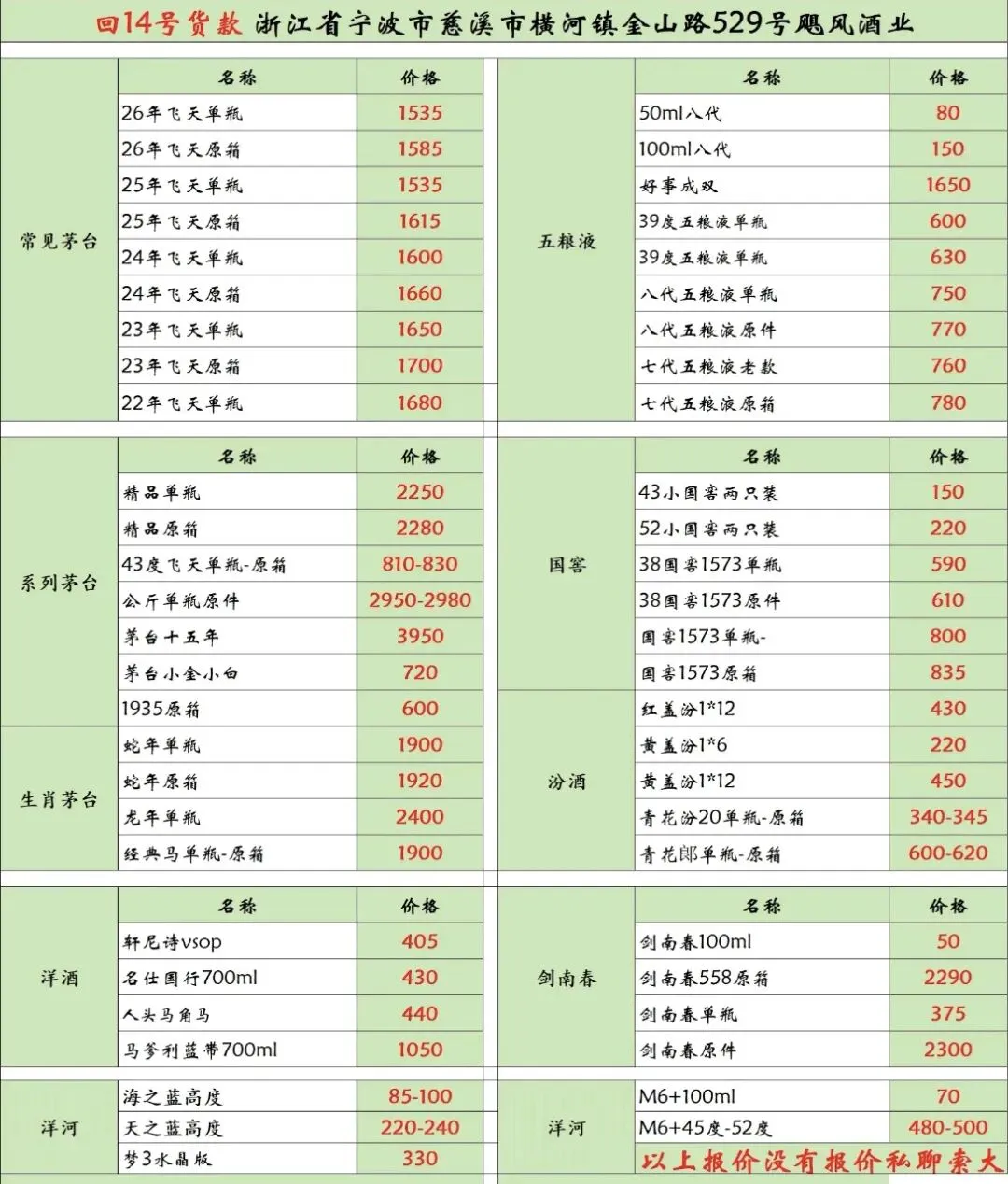 茅台酒水地址:浙江省宁波市慈溪市横河镇金山路529号