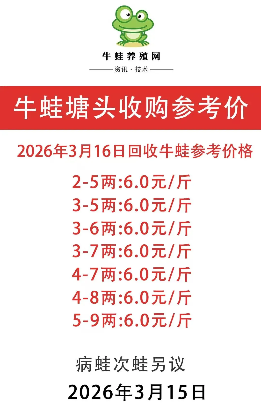 2026年3月16日牛蛙行情参考(蛙价下跌!!!)