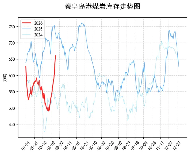【港口情况】:北方九港的库存现在已经突破2600万吨了,比月初增加了近200万吨,一直是调入的比调出的多,库存压得人喘不过气。环渤海Q5500现货价在720到745元/吨,还是弱势运行,大型集团的外购价今天又下调了6到7元,贸易商急着出货,下游却一个劲压价,实际成交特别少。秦皇岛港、曹妃甸港这些核心港口,现货报价一天比一天松,贸易商哪怕降价也难找到买家,整个港口市场都处于“卖方急出货、买方不买账”的僵持状态。