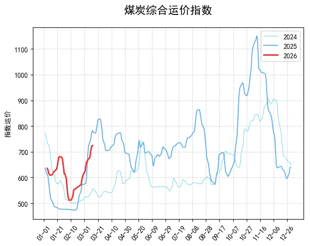 【进口情况】:目前进口煤还是全面倒挂的状态,根本带动不了国内市场。虽然印尼那边因为斋月、RKAB政策没落地,供应收紧,再加上中东地缘冲突,国际煤价一直高位运行,但国内煤价比进口煤还低,高卡煤倒挂大概20元,低卡煤倒挂15到40元,进口完全没价格优势。海关总署之前公布的数据显示,1-2月全国进口煤炭7722.2万吨,同比微增1.5%,但今天业内人士分析,3月份进口量大概率会有所缩减,毕竟现在进口煤不划算,国内终端用户更愿意买内贸煤。