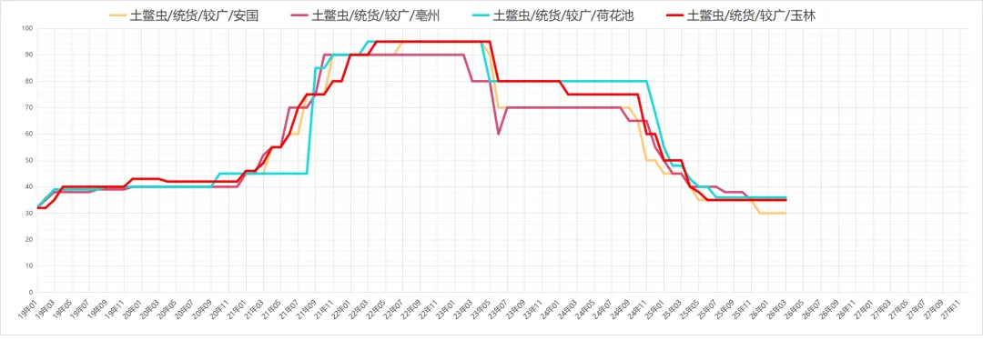 土鳖虫新货大量上市,近日市场商家关注力度一般,货源走销多以小批量走动为主,行情较年前略显疲软,现山东大统货价格在35元左右。