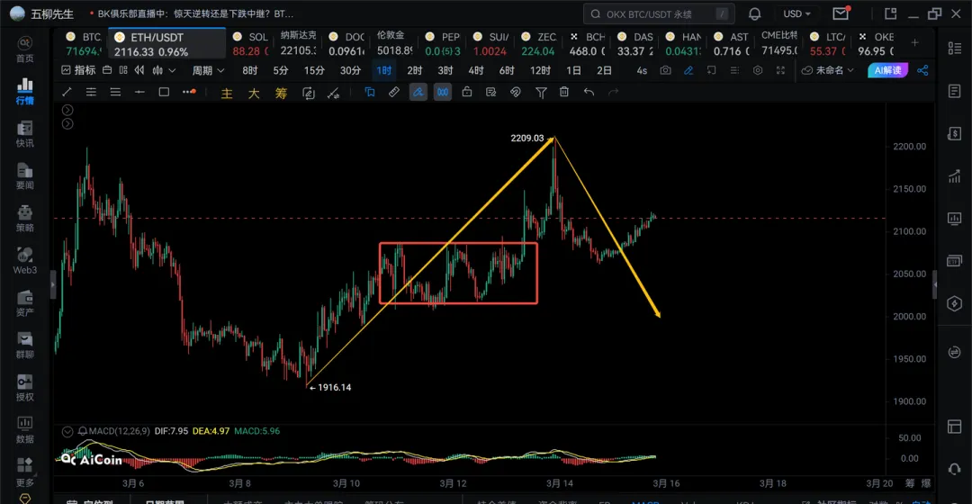2) 短线先看1h级别回调,等待该结构走出来
