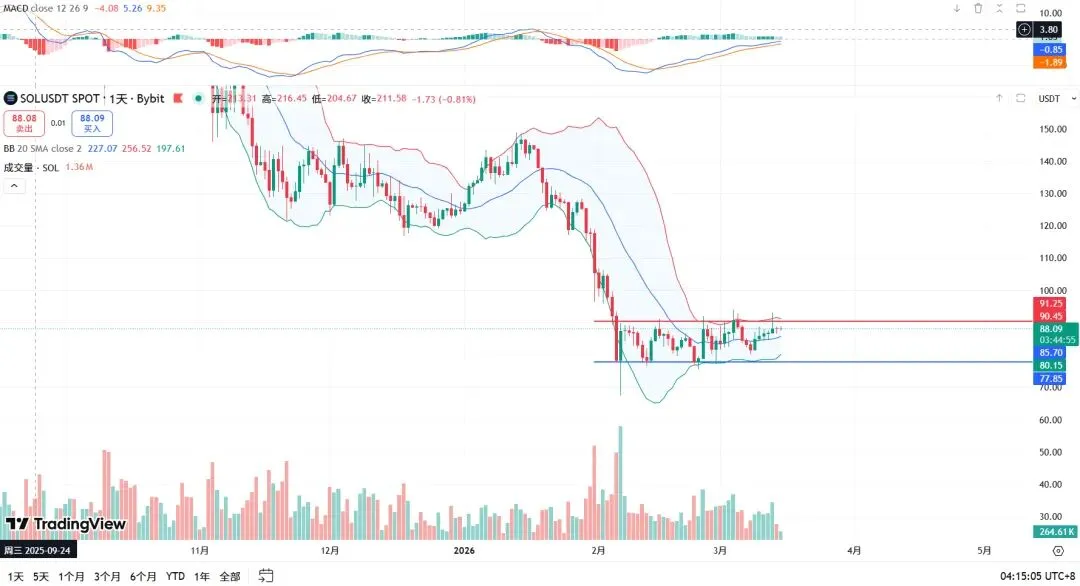 SOL价格:88.06USDT