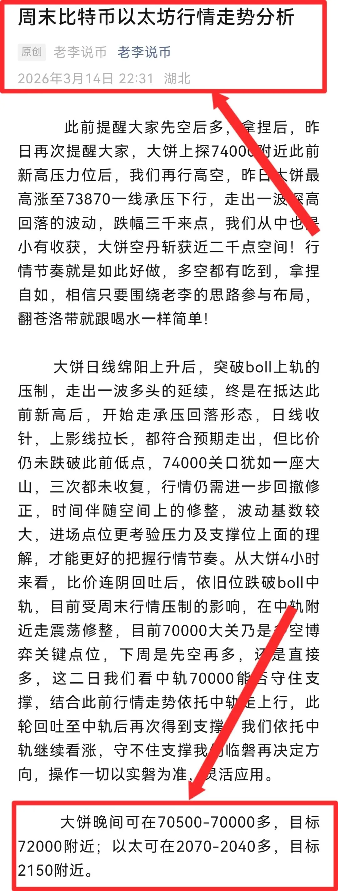 大饼早间可在71800-71300多,目标74000附近!以太可在2130-2100多,目标2250附近。