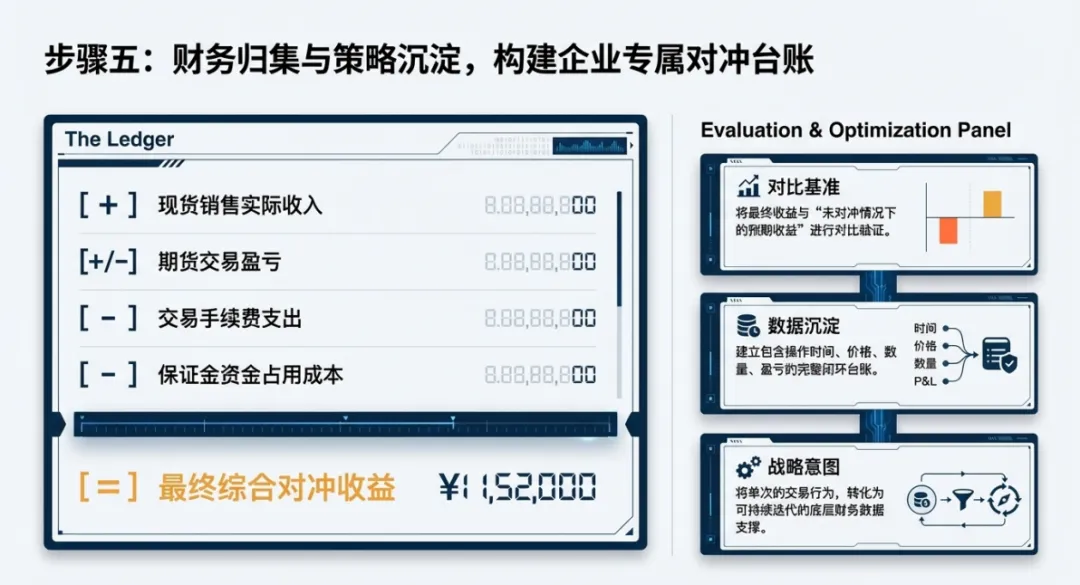 对冲结束后,详细核算现货销售收入、期货交易盈亏、手续费、保证金占用成本等,对比未对冲情况下的预期收益,评估对冲效果。建立对冲台账,记录每次操作的时间、价格、数量、盈亏情况,为后续优化策略提供数据支撑。
