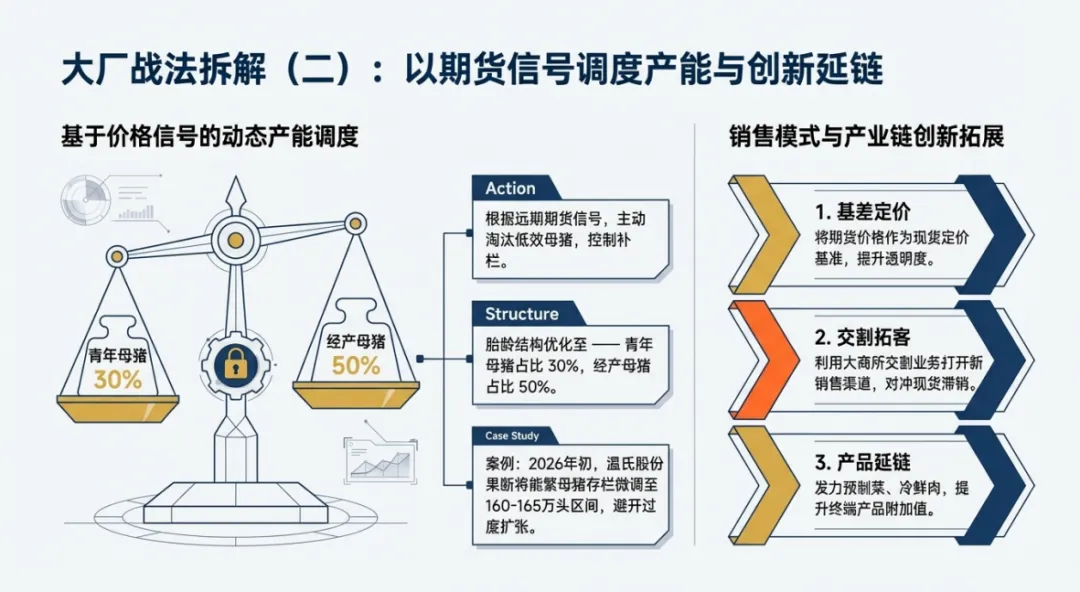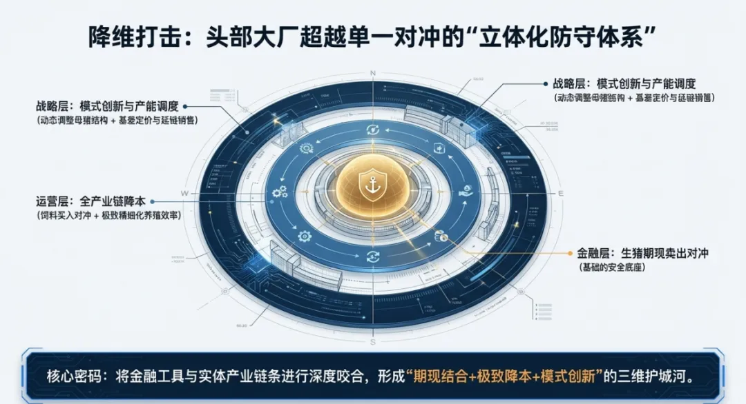 国内头部养殖企业在长期行情低迷时,形成了“期现对冲+全产业链降本+模式创新”的立体化应对体系,值得中小企业借鉴: