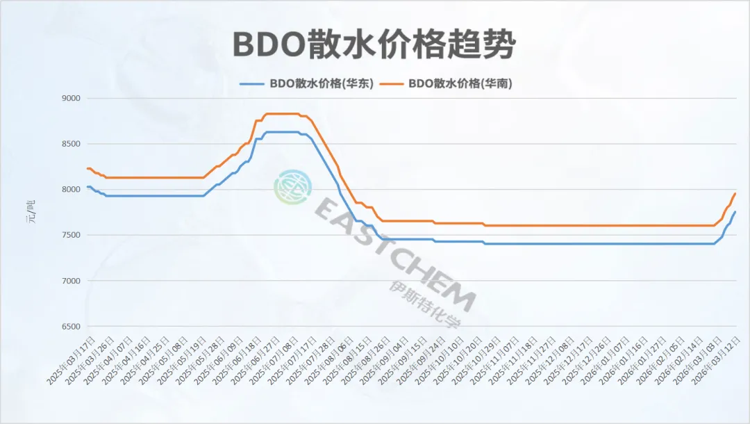 长城能源装置重启、宁夏惟远及部分企业检修致BDO供应收缩,下游PTMEG开工下降但PBT、PBAT和TPU提升,整体需求环比减少,预计后市价格区间震荡。