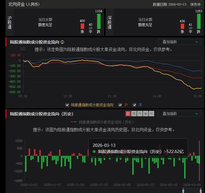 北上资金大幅度流出。