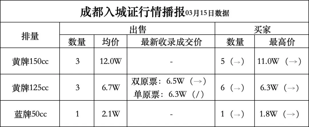 成都摩托车入城证2026年03月15日交易行情播报-来自"路集GO"