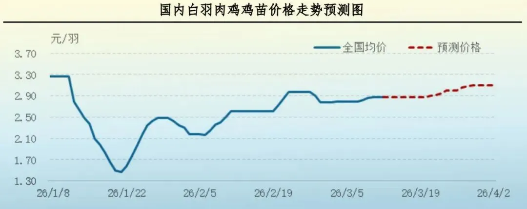 周内国内白羽肉鸡苗价格呈缓涨趋势,周均价环比微涨。周内孵化场出苗量略降,仍处于高位水平;毛鸡报价稳定,对鸡苗市场需求有支撑作用,孵化场整体排苗尚可,但毛鸡成交存在暗降,使得养殖户对鸡苗价格上涨较为抵触,孵化场涨价难度较大,周内鸡苗成交低价微涨、高价稳定,均价涨幅有限。