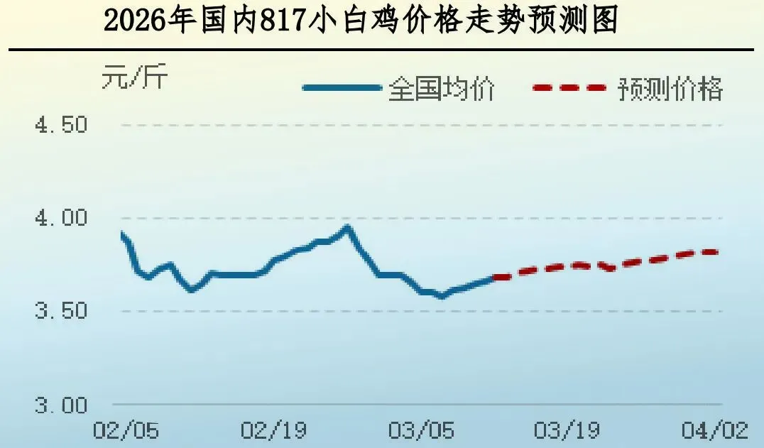 本周3.0-3.5斤817小白鸡周度均价3.63元/斤,与上周均价相比,下跌0.07元/斤,跌幅1.89%。