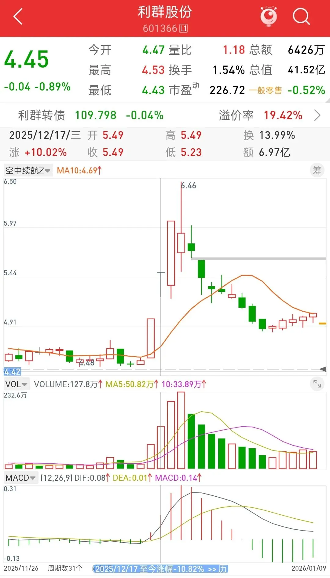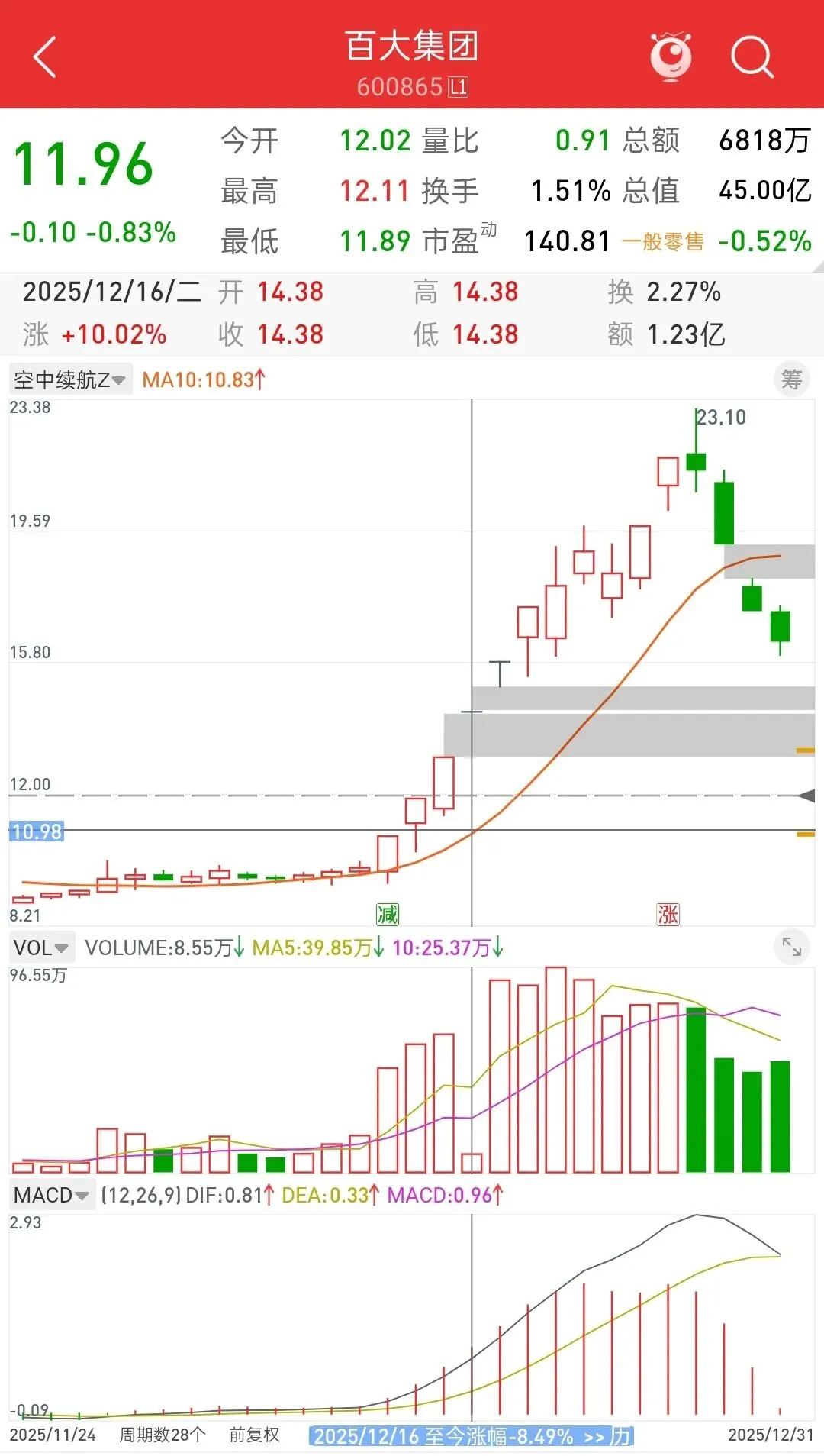 · 次日(12.17):板块延续强势,百大集团晋级5连板,利群股份2连板,商超、免税、文旅等细分领域持续活跃