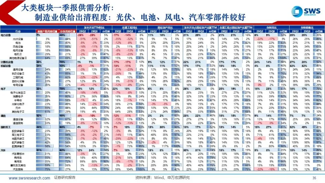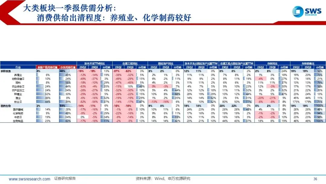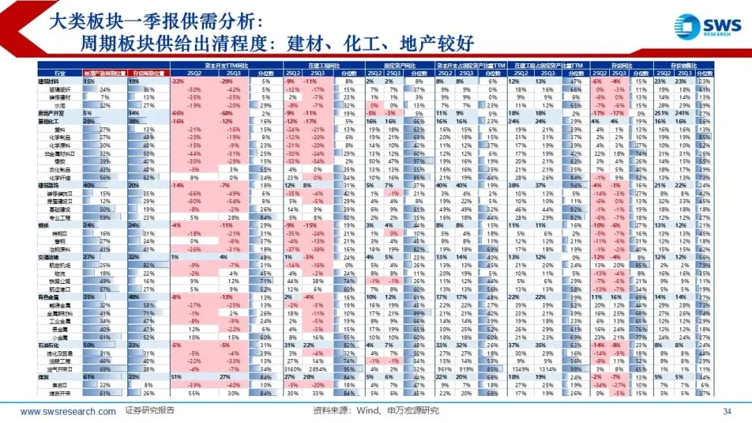 目前供给出清程度较好的行业主要集中在:建材、化工、地产、光伏、电池、风电、养殖业、化学制药等。