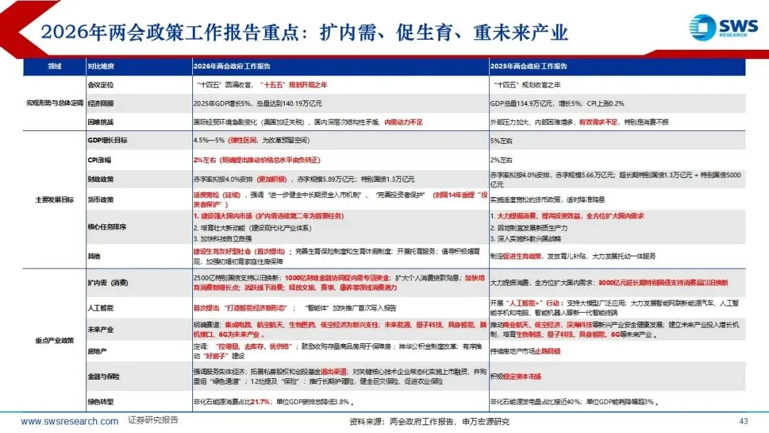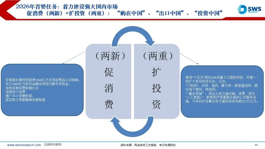 连续2年扩内需(两新两重:促消费+扩投资)作为当年经济的首要任务。“十五五” 再度重视总量,坚持以经济建设为中心:“十二五”、“十三五”和“十四五”规划中均是以结构改革作为主线,而“十一五”规划也是以经济建设为中心;另外历史上五年规划首年的名义GDP增速均相比前一年加速。
